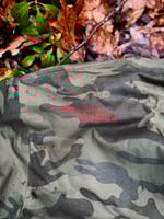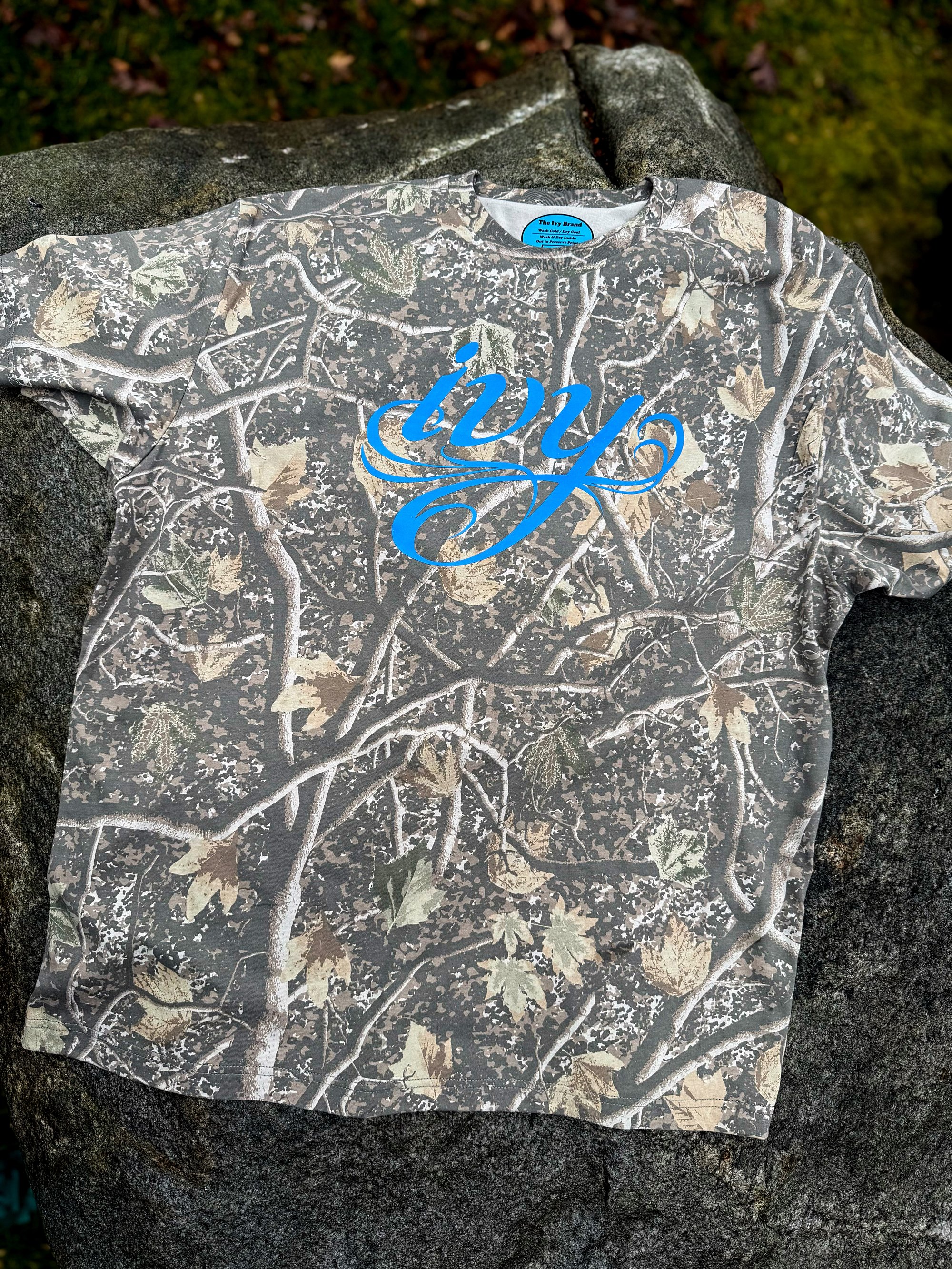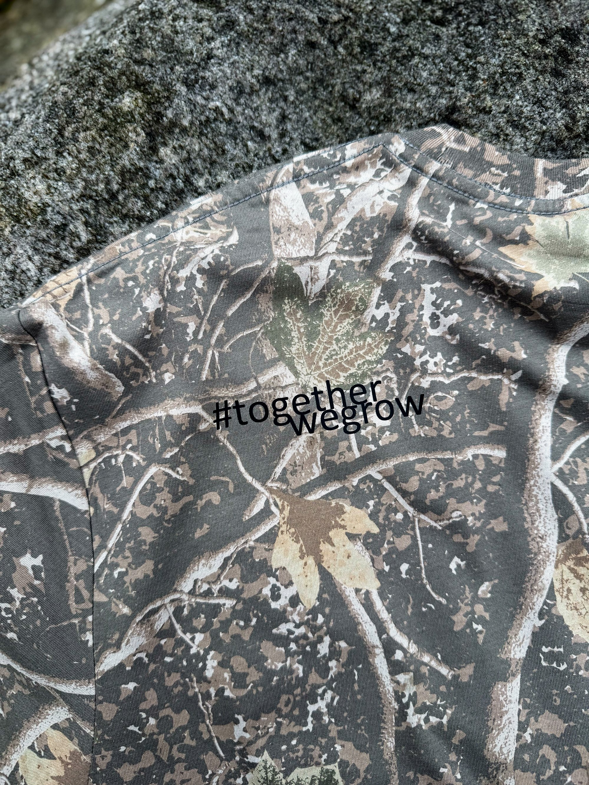 Embracing the camouflage fad, we’ve emblazoned these two shirts with our classic logo in bright upbeat colors.